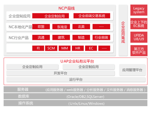 NC產(chǎn)品線包括NC核心應(yīng)用產(chǎn)品、NC行業(yè)產(chǎn)品、NC本地化產(chǎn)品以及企業(yè)客戶定制應(yīng)用等。通過集成平臺,可實現(xiàn)與客戶現(xiàn)有應(yīng)用系統(tǒng)的整合